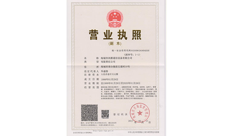 海城市鴻雁通信設(shè)備有限公司成立于1985年,位于海城市鞍海公路東側(cè),交通便利。注冊(cè)資金1000萬(wàn),占地面積17800平方米,職工120人,年產(chǎn)值600多萬(wàn)。法人代表畢盛春,曾多次獲得“中國(guó)誠(chéng)信企業(yè)家”稱(chēng)號(hào)。